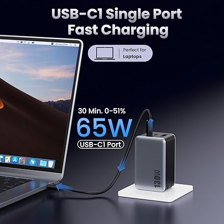 Thông tin sản phẩm USB C Charger Block 130W, GaN 3-Port Compact Wall Charger,Foldable Fast Charging Station,PD 65W USB C Laptop Charging Adapter for MacBook Pro/Air, Dell XPS, iPhone 16/15/14/13,iPad Pro,Android etc