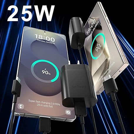 Thông tin sản phẩm USB C Charger, Fast Charging Block, Type-C Power Adapter. The Mobile Phone Charger is Suitable for Samsung Galaxy S25/S24 S23 S22 S21 Ultra/S20/S20 Ultra/Note 20 Ultra,Android【2-Pack】