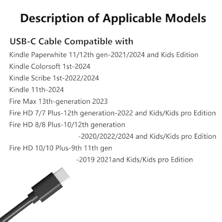 Thông tin sản phẩm USB-C Charger for New Amzon Kindle with Extra Long 10FT Charging Cable Designed for Kindle Paperwhite 11th 12th, Colorsoft 1st, Scribe 1st, Kindle 11th