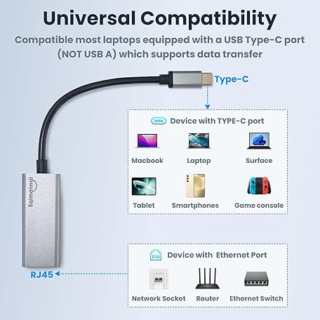 USB C to ethernet Adapter,Ethernet to USB c,TypeC to RJ45 Ethernet Adapter 1Gbps Gigabit Ethernet Compatibility for Mac,MacBook Pro/Air,Dell XPS,Chromebook,Surface