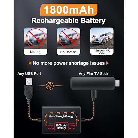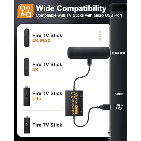 USB Power Cable Adapter for Fire TV Stick, Powers Streaming TV Sticks Directly from TV's USB Port, 5V/2.1A for FireStick 4K/4K Max, Eliminates AC Adapter Dependency and Declutters Wires