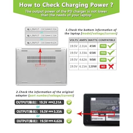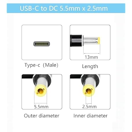 Thông tin sản phẩm USB Type-C to 5.5mm Laptop Charging Smart Round Tip Adapter, 5.5 x 2.5mm Female, 65W or 100W Type-C GaN Wall Charger, for Asus Fujitsu Lenovo Notebook Q551L U56E X550C X551M R554L Q500A X555L