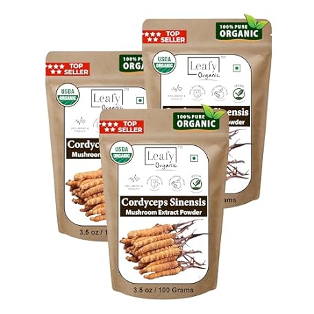 USDA Organic Cordyceps Sinensis Mushroom Extract (10.5 Oz / 300 Grams) Cordyceps Mushroom Extract Supplement - Promotes Energy, Endurance and Stamina - 100% Fruiting Body - Leafy Organic