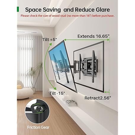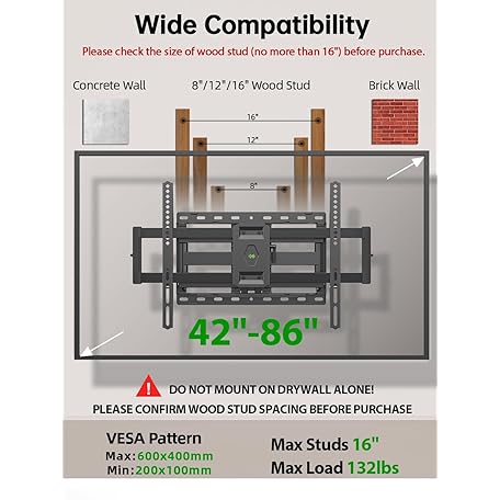 Thông tin sản phẩm USX Mount Full Motion TV Wall Mount for Most 42-86 inch Flat Screen/LED/4K, TV Mount Bracket Dual Swivel Articulating Tilt 6 Arms, Max 16" Wood Studs, VESA 600x400mm, Holds up to 132lbs