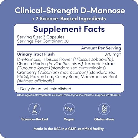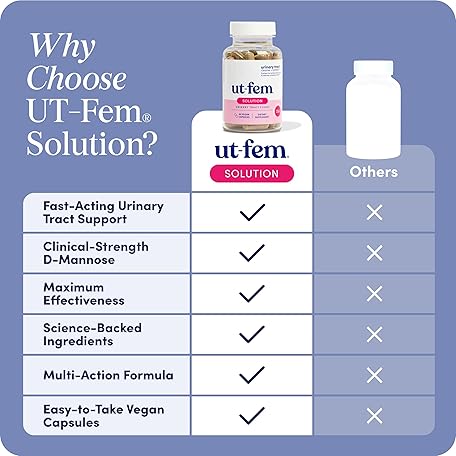 Thông tin sản phẩm UT-Fem Solution - Fast-Acting Urinary Tract Flush for Women, Proactive UTI Support, Promotes Cleansing & Comfort, Clinical-Strength D-Mannose, Cranberry, and Natural Ingredients - 60 Vegan Capsules
