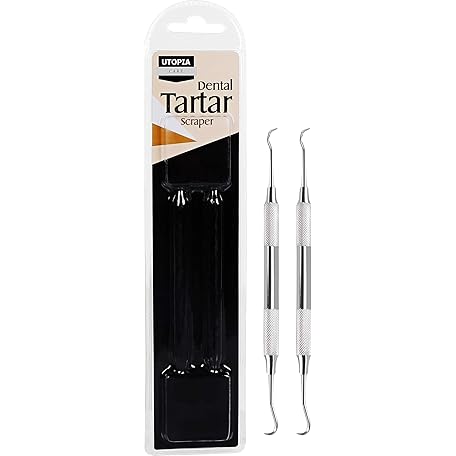 Utopia Care Professional Dental Tartar Scraper Tool, Dental Pick, 6.5 Inch Double Ended Tartar Remover for Teeth, Plaque Remover, Tooth Scraper, Silver, Pack of 2