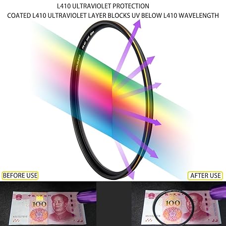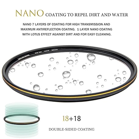• UV Filter,36-Layer Nano Coatings MRC Multi Resistant Coating Oil Water Scratch,Block Below L410 UV, Ultra Slim UV Protection Lens Filter (46mm)