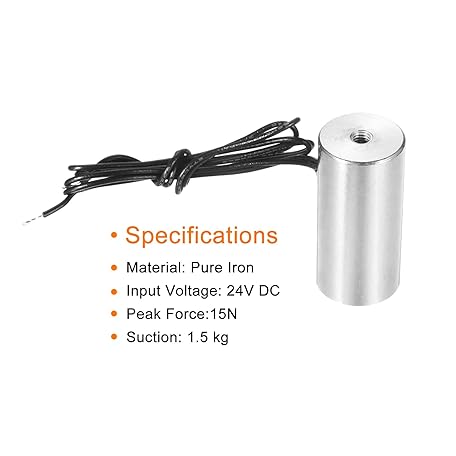 uxcell Round Solenoid Electromagnet DC 24V 15N 3.3LB/1.5Kg Electric Magnet Electric Lifting Magnet for Automation Equipment