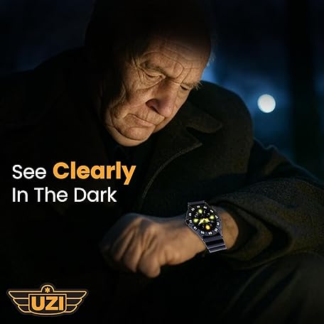 Thông tin sản phẩm Uzi Swiss Tritium Military Watch for Men - Black Dial, Rubber & Nylon Band, Scratch-Resistant, 20ATM Water Resistant, Swiss Quartz, Protector Rubber, 43mm