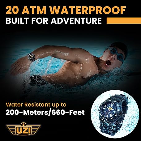 Sản phẩm Uzi Swiss Tritium Military Watch for Men - Black Dial, Rubber & Nylon Band, Scratch-Resistant, 20ATM Water Resistant, Swiss Quartz, Protector Rubber, 43mm đang được bán với giá ưu đãi là $143.2805 tại nước Mỹ.