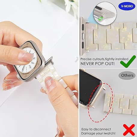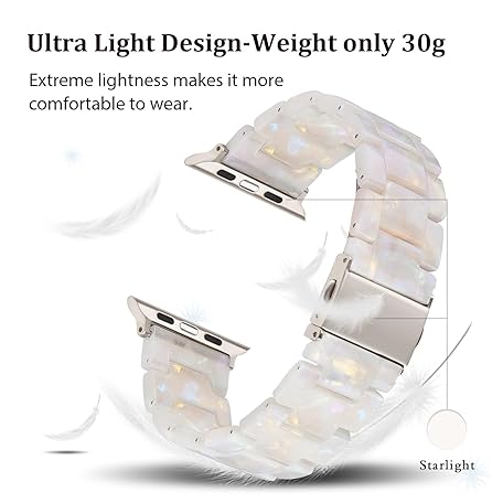 Sản phẩm V-MORO Resin Bands Compatible with Apple Watch Series 8/7/9/10/11 Starlight Buckle Fashion Lightweight Cute Watch Strap for iwatch Series SE/6/5/4/3/2/1(Aurora White,42mm/41mm/40mm/38mm) đang được bán với giá ưu đãi là $17.5926 tại nước Mỹ.
