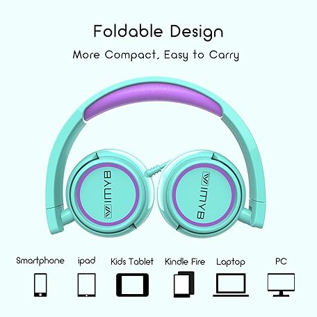 Thông tin sản phẩm V1 Kids Headphones, Wired Stereo Foldable Tangle-Free 3.5mm Adjustable On-Ear Headphones for Kids for School/Toddlers/Childrens/Teens/Boys/Girls/Ipad/Tablet/Kindle/Phones/Travel/Plane (Green)