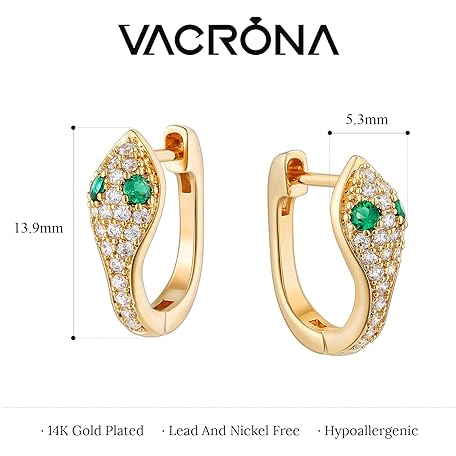 Sản phẩm VACRONA Gold Hoop Earrings Huggie Earrings for Women 14k Gold Plated Small Hoops Green Snake Shell Beaded Earrings Hypoallergenic Jewelry Gift đang được bán với giá ưu đãi là $15.2491 tại nước Mỹ.