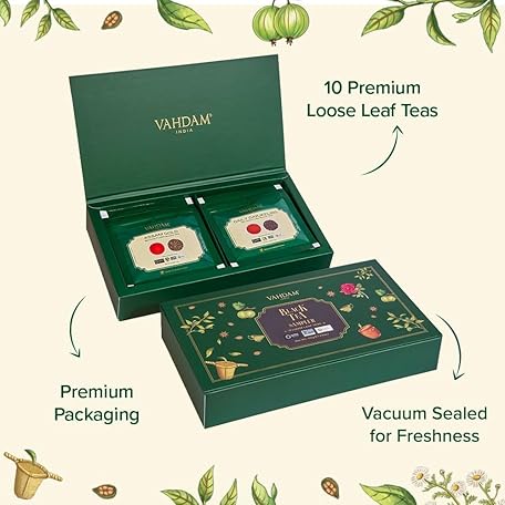 Thông tin sản phẩm VAHDAM, Assorted Black Tea Loose Leaf Tea Gift Set (10 Flavors) Gift Ideas for Women & Men | Directly Sourced From Assam and Darjeeling | Resealable Ziplock Pouch | Gifts for Him/Her