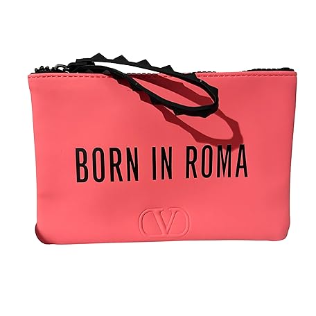 Valentino BORN IN ROMA Pink Coral Small Flat Makeup Cosmetic Gift Wristlet Pouch Approx 7L x 4.5 (4180)