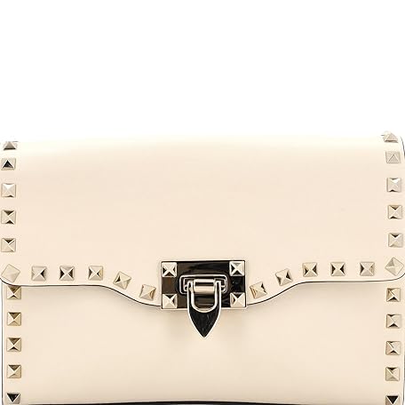 • Valentino Garavani Pre-Loved Rockstud Flip Lock Flap Bag Leather Medium, Neutral