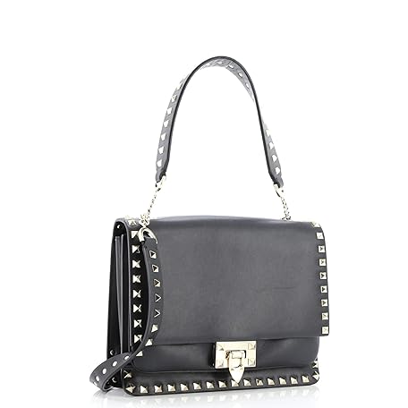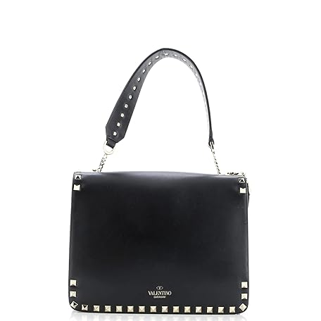 Valentino Garavani Pre-Loved Rockstud Flip Lock Flap Top Handle Bag Leather Small, Black