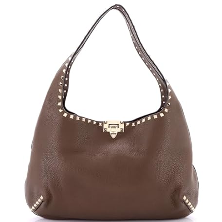 Valentino Garavani, Pre-Loved Rockstud Flip Lock Hobo Leather Large, Brown