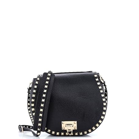 Valentino Garavani, Pre-Loved Rockstud Flip Lock Saddle Bag Leather Small, Black