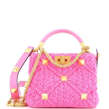 Valentino Garavani, Pre-Loved Roman Stud Top Handle Bag Woven Wool with Leather Small, Pink