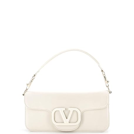 Valentino Garavani Pre-Loved VLogo Loco Flap Shoulder Bag Leather Medium, Neutral