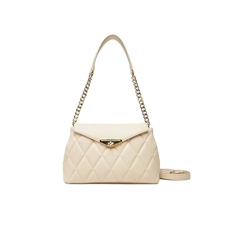 Valentino Padded Shoulder Bag with Gold Chain, Elegant Design in Beige, Flap Closure