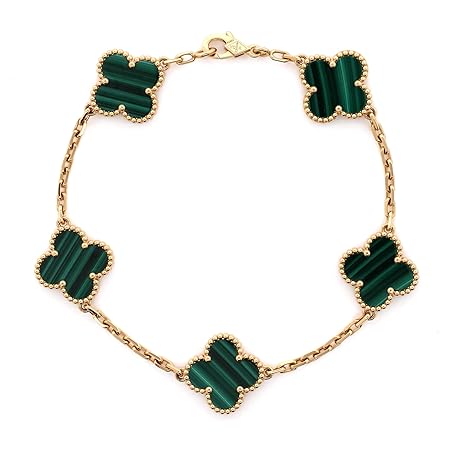 Van Cleef & Arpels Pre-Loved Vintage Alhambra 5 Motifs Bracelet 18K Yellow Gold and Malachite, Yellow Gold
