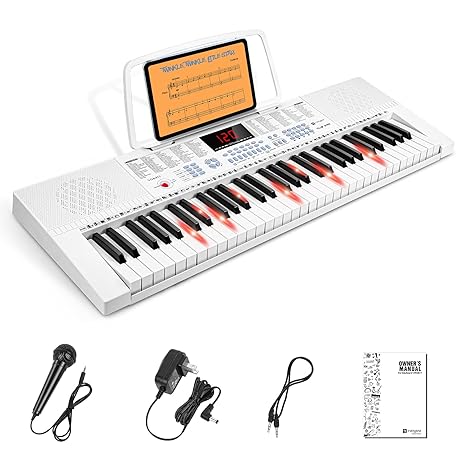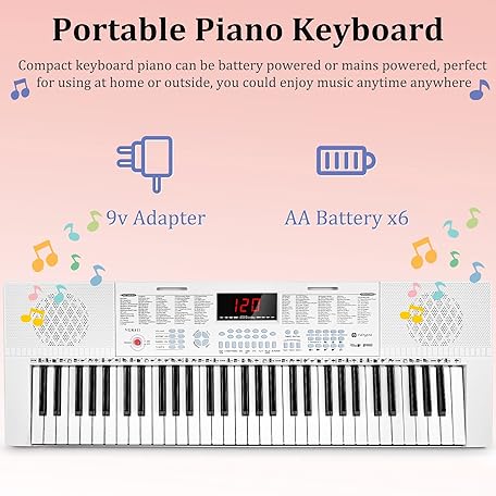 Thông tin sản phẩm Vangoa VGK611 Electric Keyboard for Beginner, 61 Keys Portable Music Keyboard With Mini Lighted Keys, Electronic Piano for Kids, Boy, Girl, White