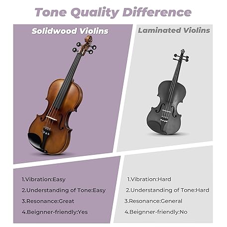 Thông tin sản phẩm Vangoa Violin 4/4 Full Set Size, Fiddle Solid Spruce Wood Tiger Pattern for Professional Advanced Intermediate Beginners Adults Student Starter Acoustic Violins Kit Outfit Ebony Fittings, Hard Case