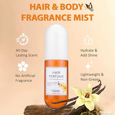 Sản phẩm Vanilla Hair & Body Perfume Spray, Pheromones Perfumes for Women, Long-Lasting Fragrance Mist, Frizz Control & Shine-Enhancing, Nourishing Hair Repair Mist, Daily Use, Alcohol-Free, 1.7 Oz Travel Size đang được bán với giá ưu đãi là $17.4291 tại nước Mỹ.