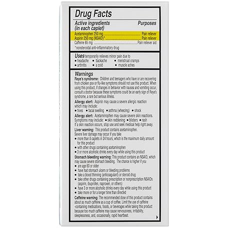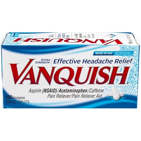 Thông tin sản phẩm Vanquish Headache Relief, Acetaminophen, Aspirin, Caffeine, 100 Caplets, Packaging May Vary