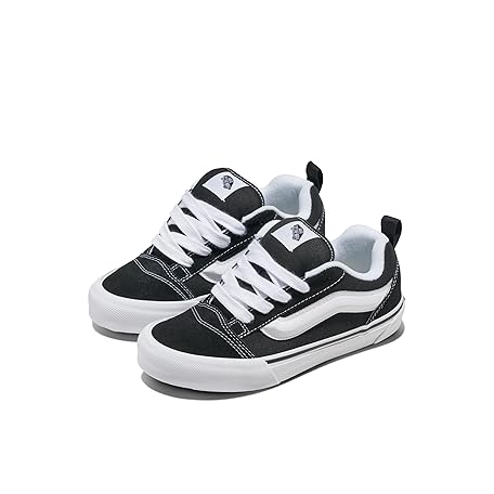Vans Big Kids' Knu Skool Shoe | '90s Retro Puffy Low-Top Fashion Sneakers for Boys & Girls, Black/True White, 5