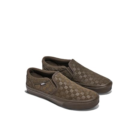 Thông tin sản phẩm Vans Men's Asher Slip-On Shoe | Comfortable Sneakers for Walking, Fashion & Everyday Wear, Embossed Suede Coal Brown, 11