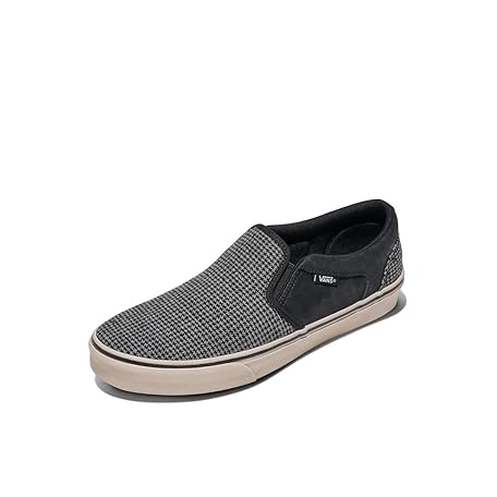 Vans Men's Asher Slip-On Shoe | Comfortable Sneakers for Walking, Fashion & Everyday Wear, Houndstooth Black/Taupe, 9.5