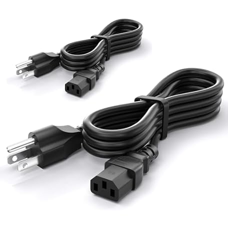 Varbmt 10A 125V C13 6ft Power Cable, Sturdy 3 Prong AC Cord for Monitor, TV, PC, Amplifiers, Printers, Projectors, Game Consoles, Electronics Devices, Universal Safe and Durable Power Cord, 2 Pack