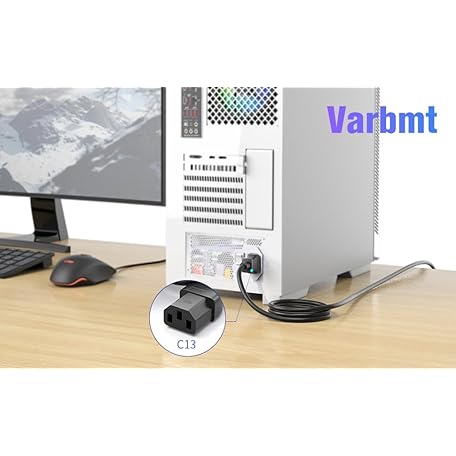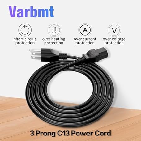 Varbmt 6ft (1.8m) Computer Power Cable, NEMA 5-15P to C13, 18AWG Black 10A/125V 3 Prong AC Cord, Replacement Power Cable for TV, Monitor, Printer, Game Consoles – Wide Compatibility, 3 Pack