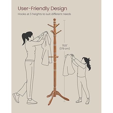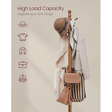 Thương hiệu VASAGLE là cái tên nổi tiếng được rất nhiều khách hàng trên thế giới chọn lựa. Với kiểu dáng đẹp mắt, sang trọng, sản phẩm VASAGLE Solid Wood Coat Rack and Stand, Free Standing Hall Coat Tree with 10 Hooks for Hats, Bags, Purses, for Entryway, Hallway, Rubberwood, Caramel Brown URCR03WN là sự lựa chọn hoàn hảo nếu bạn đang tìm mua một món cho riêng mình.
