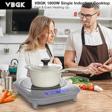 • VBGK Induction Cooktop, 1800W Single Burner Induction Burner,Hot Plate with 5 Cooking Modes,Stove Top with 9 Temperature Levels, 4H Timer