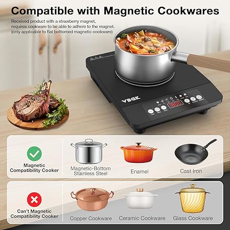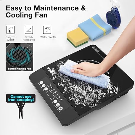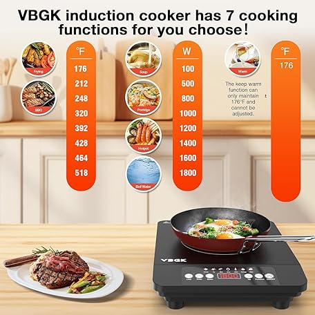 Thông tin sản phẩm VBGK Single Burner Induction Cooktop,1800W Portable Induction Cooktop,110V Hot Plate with LCD Sensor Touch, 7 Temp Levels up to 518°F, Safety Lock, 4-Hour Timer, 9 Heat-Resistant Cooking