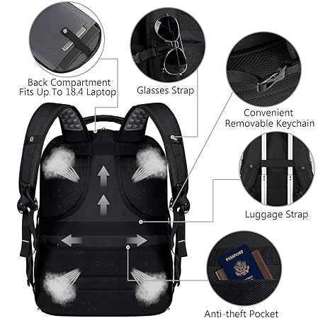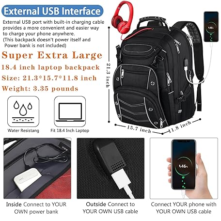 Thông tin sản phẩm VECKUSON 18.4 Laptop Backpack for unisex, 60L Extra Large Gaming Laptops Back Bag with USB Charger Port,TSA Friendly Flight Approved and RFID Anti-Theft Pocket Heavy-duty Pack,21.3*15.7*11.8inch Grey