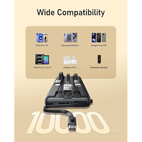Thông tin sản phẩm VEEKTOMX Portable Charger Built-in Cables,10000mAh Power Bank for iPhone,Fast Charge USB C Battery Pack Travel Essentials Powerbank Compatible with iPhone 17/16/15/14, Samsung S25/24, Android, etc