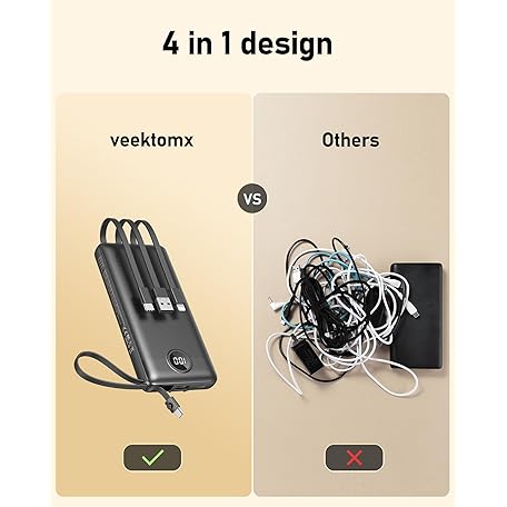 Thương hiệu VEEKTOMX là cái tên nổi tiếng được rất nhiều khách hàng trên thế giới chọn lựa. Với kiểu dáng đẹp mắt, sang trọng, sản phẩm VEEKTOMX Portable Charger Built-in Cables,10000mAh Power Bank for iPhone,Fast Charge USB C Battery Pack Travel Essentials Powerbank Compatible with iPhone 17/16/15/14, Samsung S25/24, Android, etc là sự lựa chọn hoàn hảo nếu bạn đang tìm mua một món cho riêng mình.