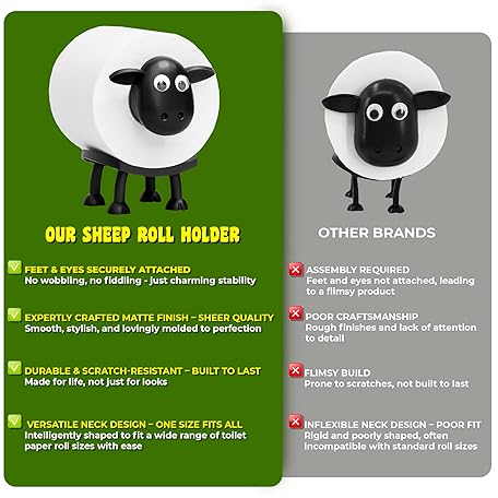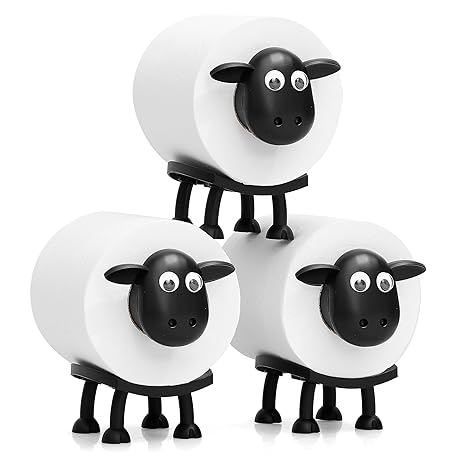 Thông tin sản phẩm VELENTI Sheep Toilet Roll Holder, Free Standing Bathroom Set, 3D Printed, Funny Hilarious Black Sheep Loo Roll Holder, Tissue Paper Storage, Cute Bathroom Decor, X3, Set of 3