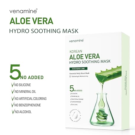 Thông tin sản phẩm VENAMINE Korean Aloe Vera Hydro Soothing Face Masks, Moisturizing Sheet Mask for Sensitive Skin, 0.81 fl. oz (10 sheet)