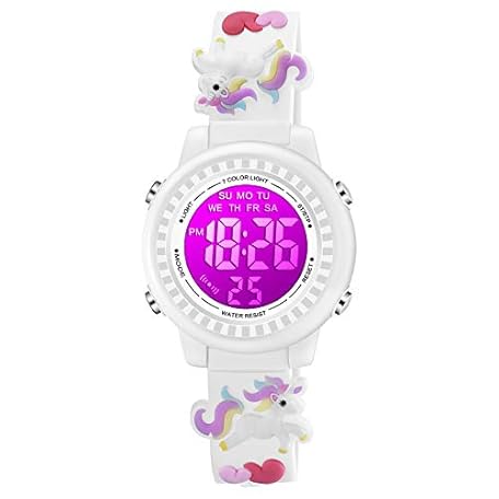 • Venhoo Kids Watches 3D Cartoon Waterproof 7 Color Lights Toddler Wrist Digital Watch with Alarm Stopwatch for 3-10 Year Girls Little Child