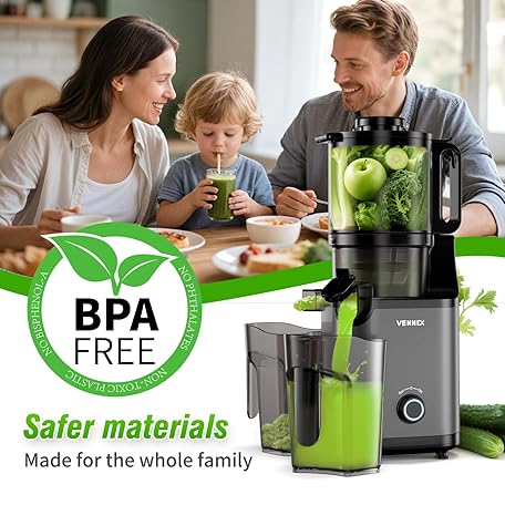 Thông tin sản phẩm VENNXE Cold Pressed Juicer, Slow Masticating Juicers Machines for Vegetable and Fruits, Easy to Clean Juice Extractor with 50 oz Capacity and 5.7" Extra Large Feed Chute, BPA Free Electric Juice Maker