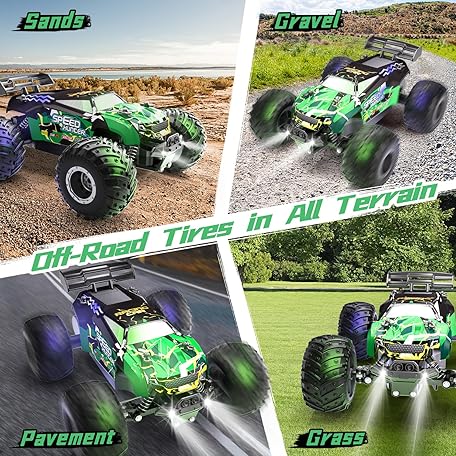 Thông tin sản phẩm Remote Control Car RC Cars All Terrain Monster Truck, Outdoor 2WD Off Road Hobby RC Truck with 2 Rechargeable Batteries and Colorful Light, 20Km/h Fast RC Car Toys Gift for Kids Boys