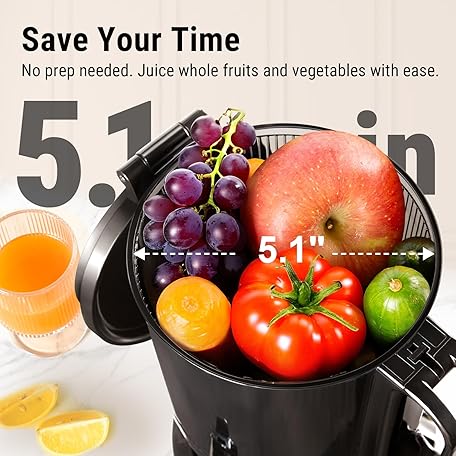 Thông tin sản phẩm Ventray Slow Masticating Juicer Machine, 5.1" Extra Large Feed Chute Cold Press Juicer for Whole Vegetables & Fruits, 250w, High Juice Yield, Easy to Clean with Brush, Great for Batch Juicing
