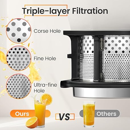 Thông tin sản phẩm Ventray Slow Masticating Juicer Machine, 5.12" Extra Large Feed Chute Cold Press Juicer for Whole Vegetables & Fruits, 250w, High Juice Yield, Easy to Clean, with Brush, Fit for Batch Juicing