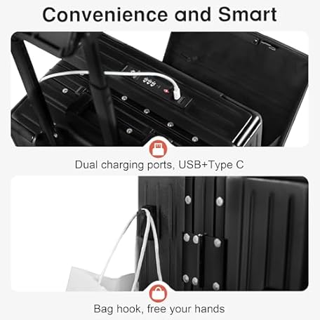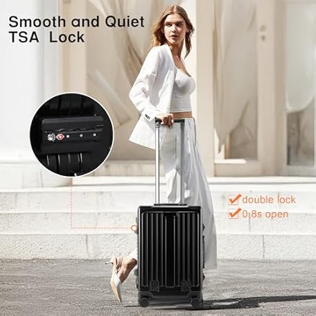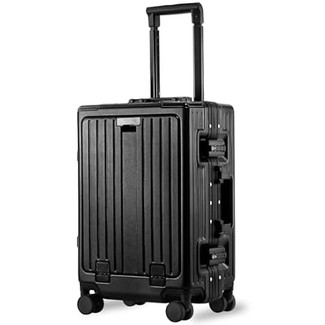 VentureVault Carry On Luggage 20 Inch, Aluminum Frame Zipperless Luggage, ABS+PC Hard Shell Suitcases, Carry On with Compartment for Short Trips, Suitcase Carry-on TSA Approved (Black)